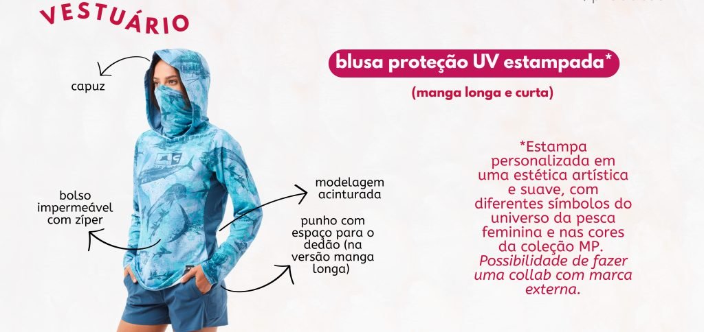 Nosso propósito é valorizar a mulher na pesca, mostrando que ela tem espaço, voz e identidade nesse universo. Ao mesmo tempo, criamos peças para toda a família, porque sabemos que os melhores momentos são compartilhados.